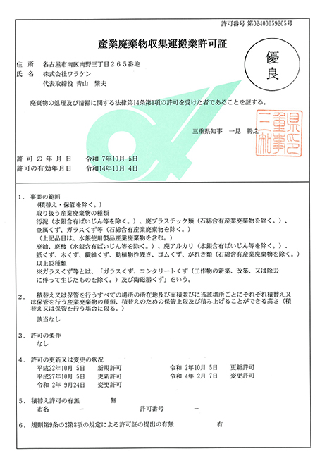 ●(三重県)産業廃棄物収集運搬業許可証