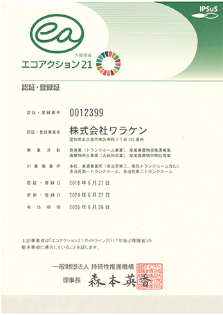 環境に配慮した取り組みを推進しています。- 認証・登録番号 0012399